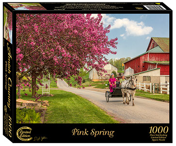Pink Spring blooms and dress at this farm near New Bedford, Ohio